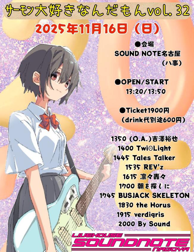 11/16(日)SOUND NOTE NAGOYAのライブ情報を更新しました。 バンド『TwiΘLight』としてのライブ出演、またO.A.で吉澤裕也としてソロ出演いたします。 来場のご予約はチケットページ、またはX・InstagramのDMよりお声掛けください。